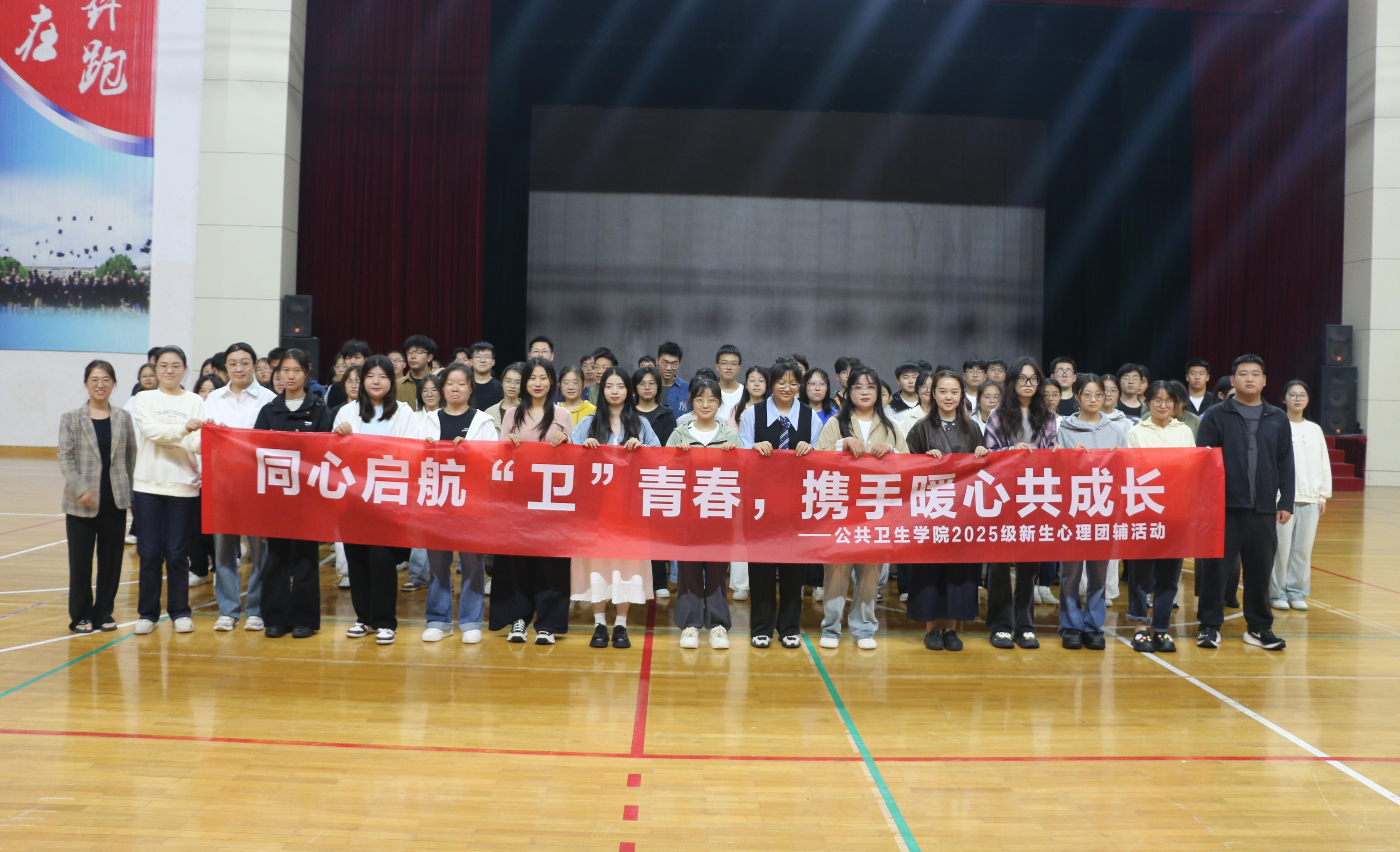 为帮助2025级新生快速适应大学生活、缓解心理压力、增强团队凝聚力,9月19日下午,公共卫生学院于主校区文体活动中心举办主题为“同心启航‘卫’青春,携手暖心共成长”的心理团体辅导活动。学院学工办主任李化玲、新生辅导员吕鑫老师以及2025级全体本科生、研究生新生参加此次活动。