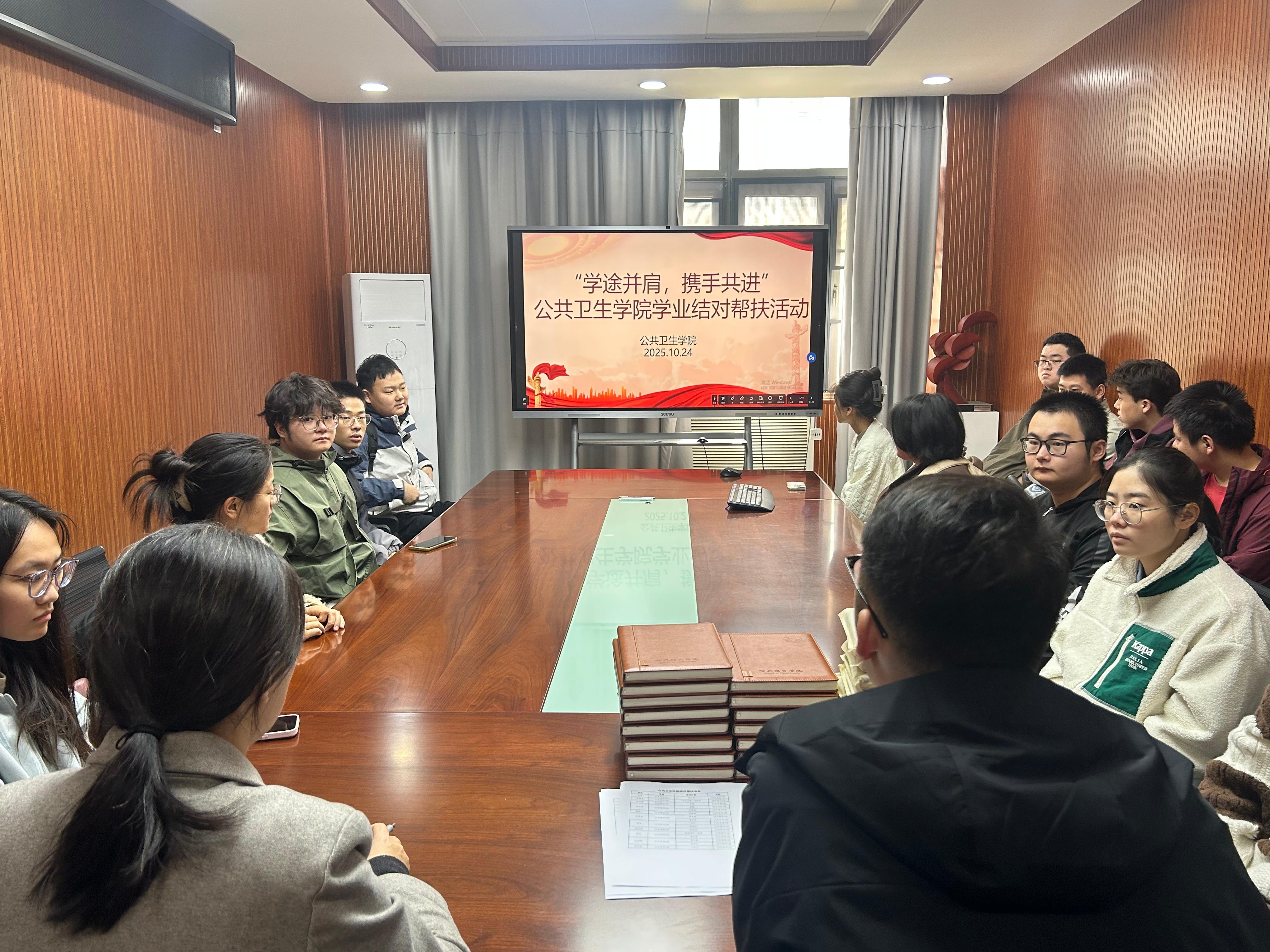 2025年10月24日,公共卫生学院“学途并肩,携手共进”学业结对帮扶活动在科教楼A227会议室召开。学院党委副书记张颖出席会议,优秀学生代表及部分学业困难同学参加会议。