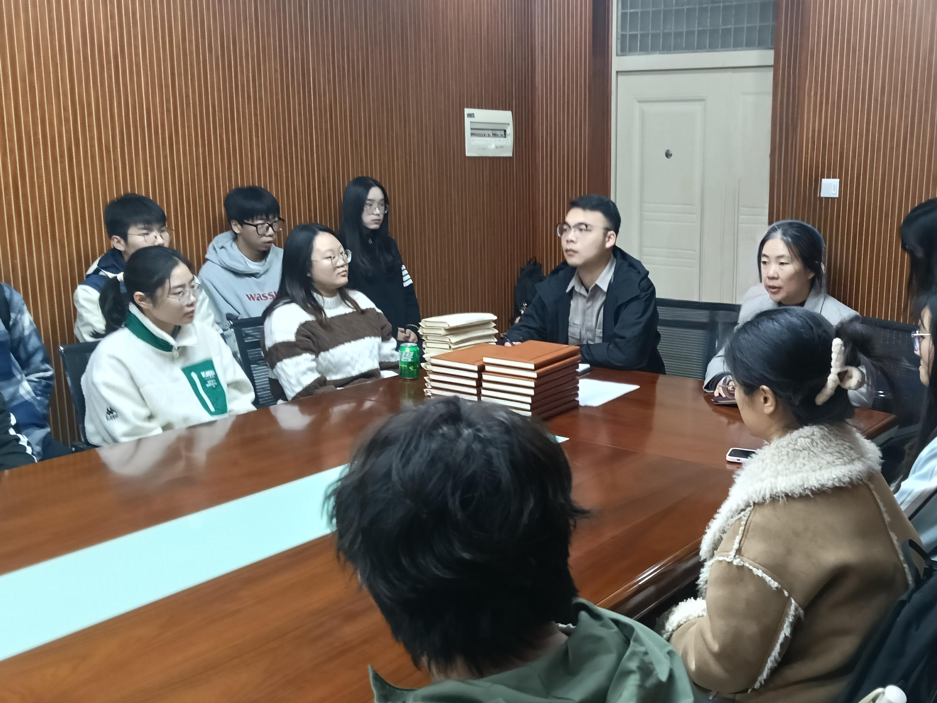 辅导员吴磊老师为参会同学颁发定制笔记本,鼓励被帮扶同学树立正确的学习态度,养成良好的学习方法,帮扶双方要共同学习,携手共进。
