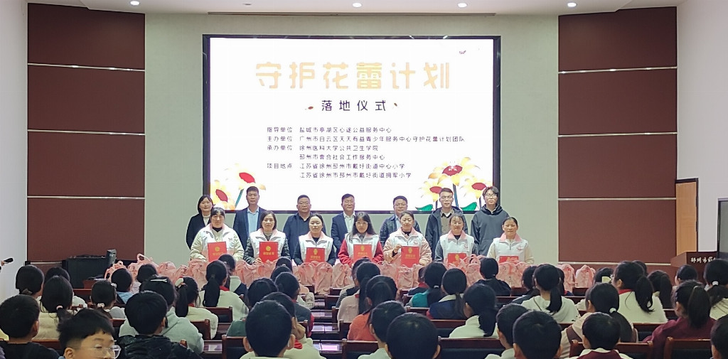 每一位女童都是含苞待放的花蕾,需要用真诚的守护浇灌,才能绽放出绚烂的生命之花。近日,一场以“五心浇灌五色花,守护花蕾绽芳华”为主题的“守护花蕾计划”落地活动,在邳州市戴圩街道中心小学温情启幕。本次活动由盐城市亭湖区心途公益服务中心指导实施,广州市白云区天天有益青少年服务中心守护花蕾计划团队、徐州医科大学公共卫生学院、邳州市壹合社会工作服务中心联合主办,项目在江苏省徐州市邳州市戴圩街道中心小学、拥军小学落地。各方以公益初心、专业匠心、协作同心、关怀暖心、守护决心,浇灌出希望蓝、专业紫、团结橙、温情粉、勇气红五色花,为女童筑牢安全屏障。