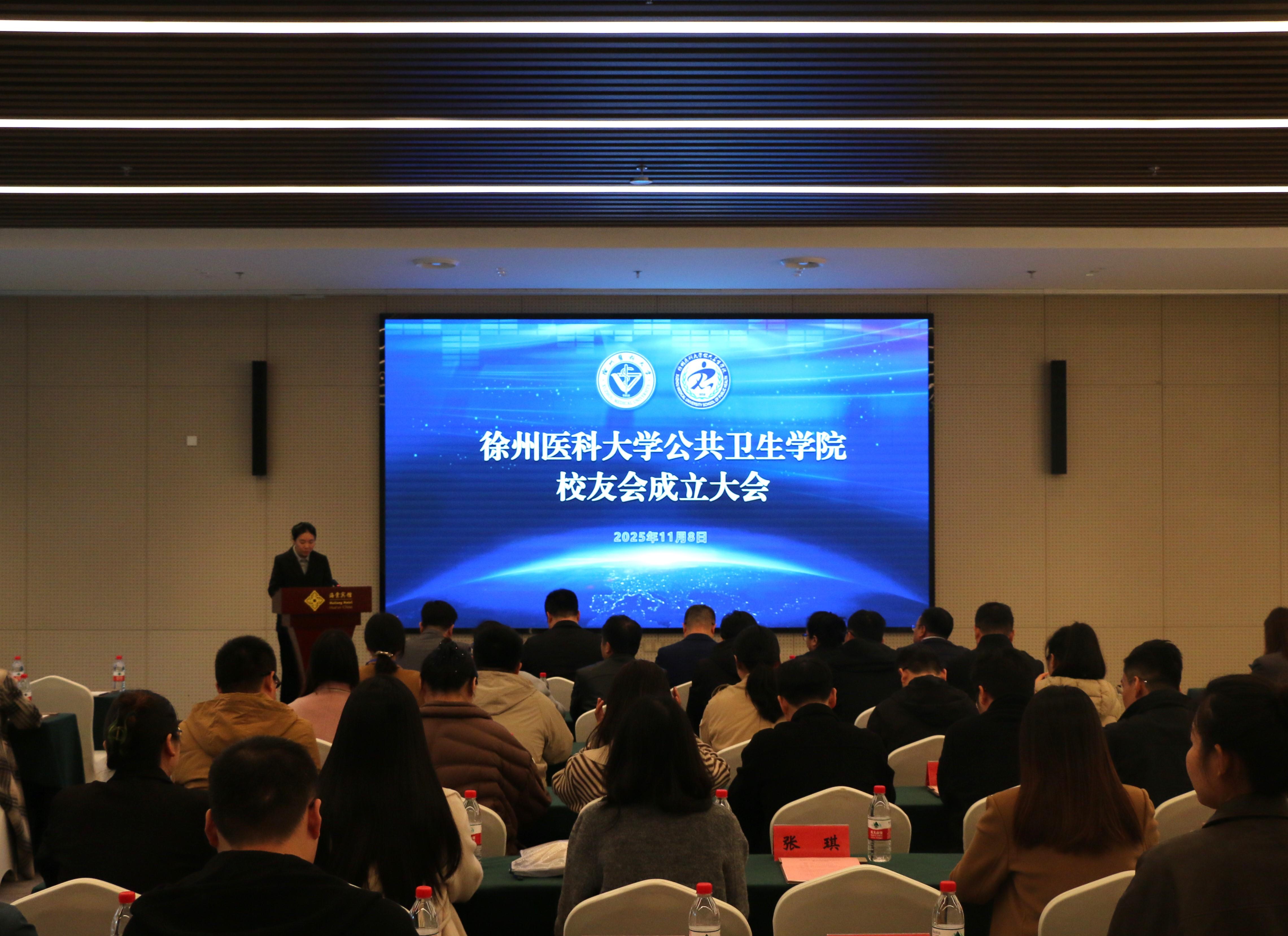 11月8日,徐州医科大学公共卫生学院校友会成立仪式如期举行。公共卫生学院党委书记胡斌、校合作发展处副处长王磊、副院长陈颜夙,公共卫生学院教师代表、校友代表100余人出席会议。活动由公共卫生学院党委副书记张颖主持。