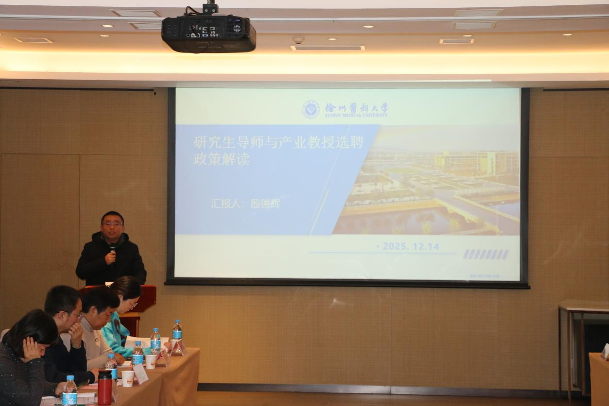 殷德辉副院长(挂职)详细解读了《徐州医科大学研究生指导教师遴选实施细则》《徐州医科大学产业教授选聘管理办法》两项政策,鼓励各实践基地教师积极申报,进一步拓宽校地合作维度。