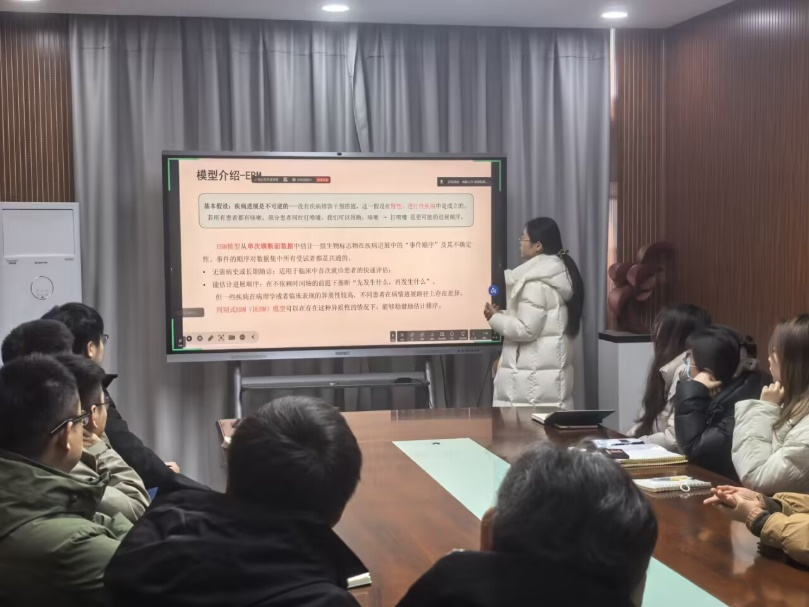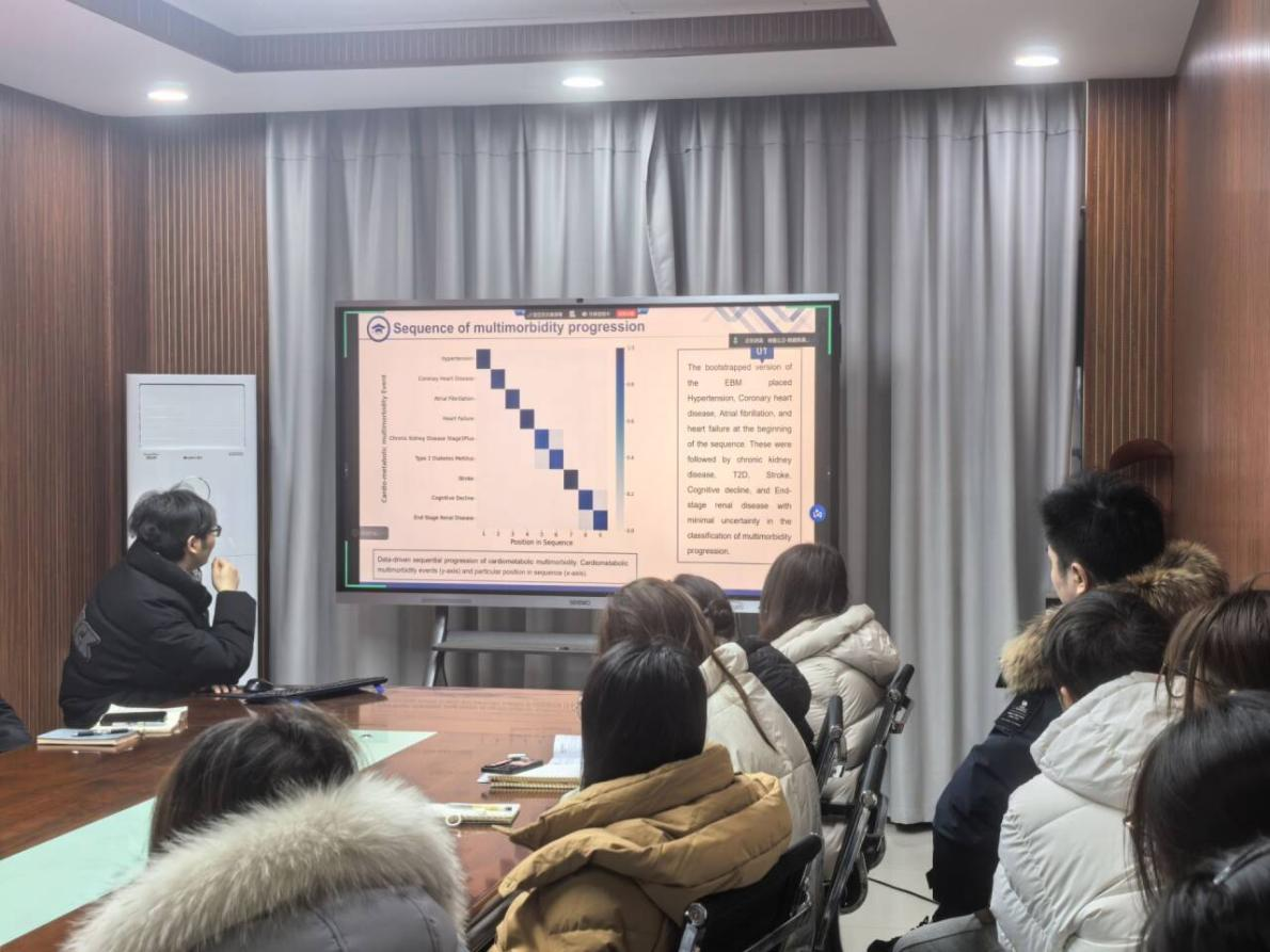 随后,肖立顺副教授分享研究成果,介绍了疾病进展模型在共病中的应用,其研究揭示多种疾病演变轨迹,为理解共病动态提供新视角。硕士生秦香玉汇报共病进展研究,通过分析患者异质性,进一步明确疾病发展规律。