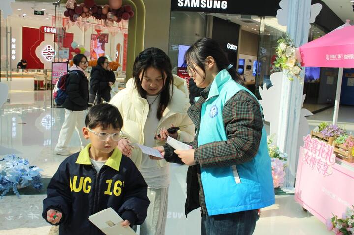 3月8日,第 116 个“三八”国际妇女节当天,志愿队联合徐州市铜山区妇幼保健院、铜山区阳光家园关爱中心,在铜山万达广场开展“‘锋’护她安,无‘艾’同行”主题公益服务活动。活动采用“义诊+宣教”双轨并行模式,为市民提供免费血压血糖检测、健康咨询及防艾知识普及,并为适龄女性设置私密、便捷的HIV免费初筛服务。依托商圈客流优势,本次活动服务市民逾1000人次,实现专业医疗资源与社会公共空间的高效联动,彰显了公共卫生学子服务社会的责任担当。